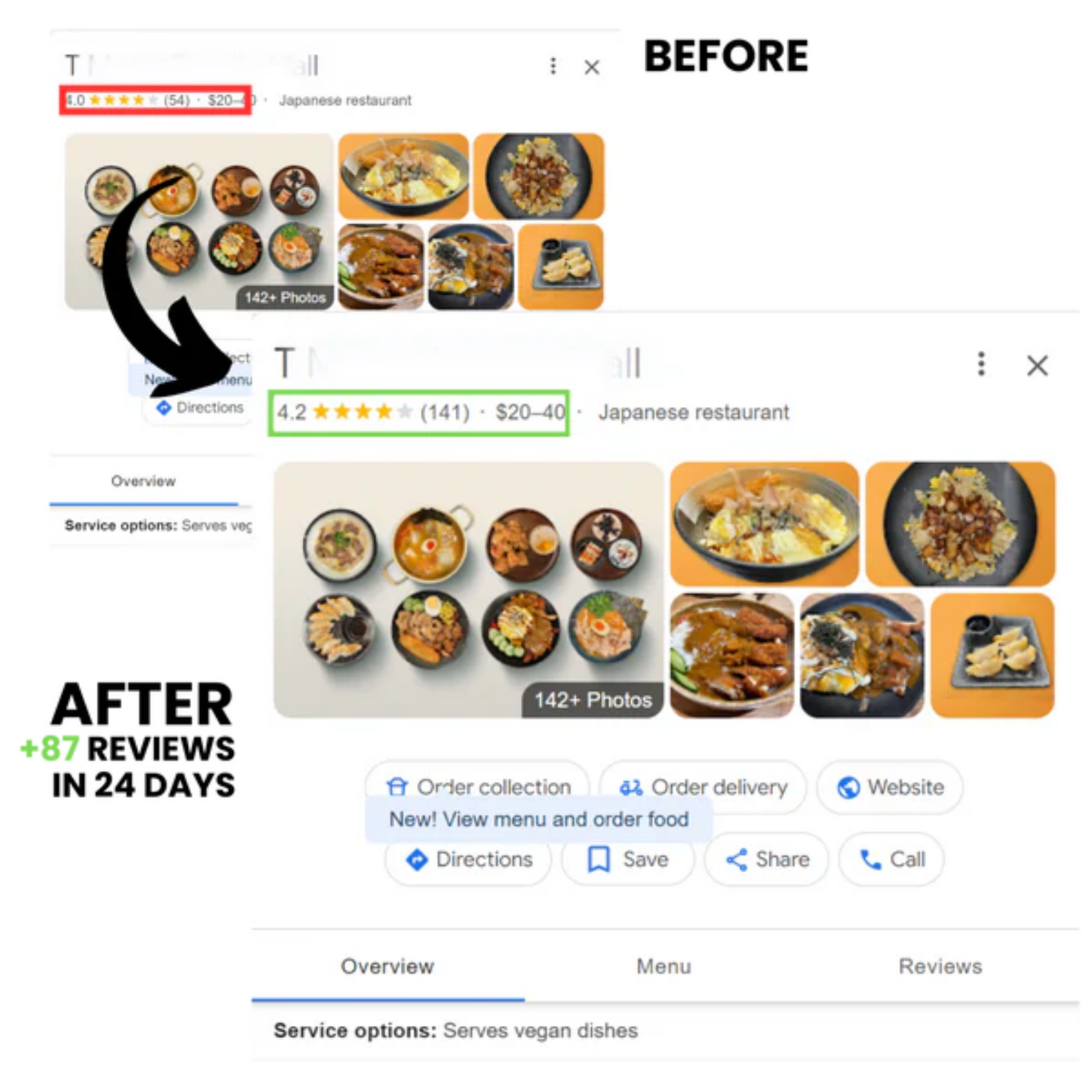 Reviews are the 2nd most important local ranking factor on Google. Stand out from the competition and outrank them in google searches with more positive google reviews.
